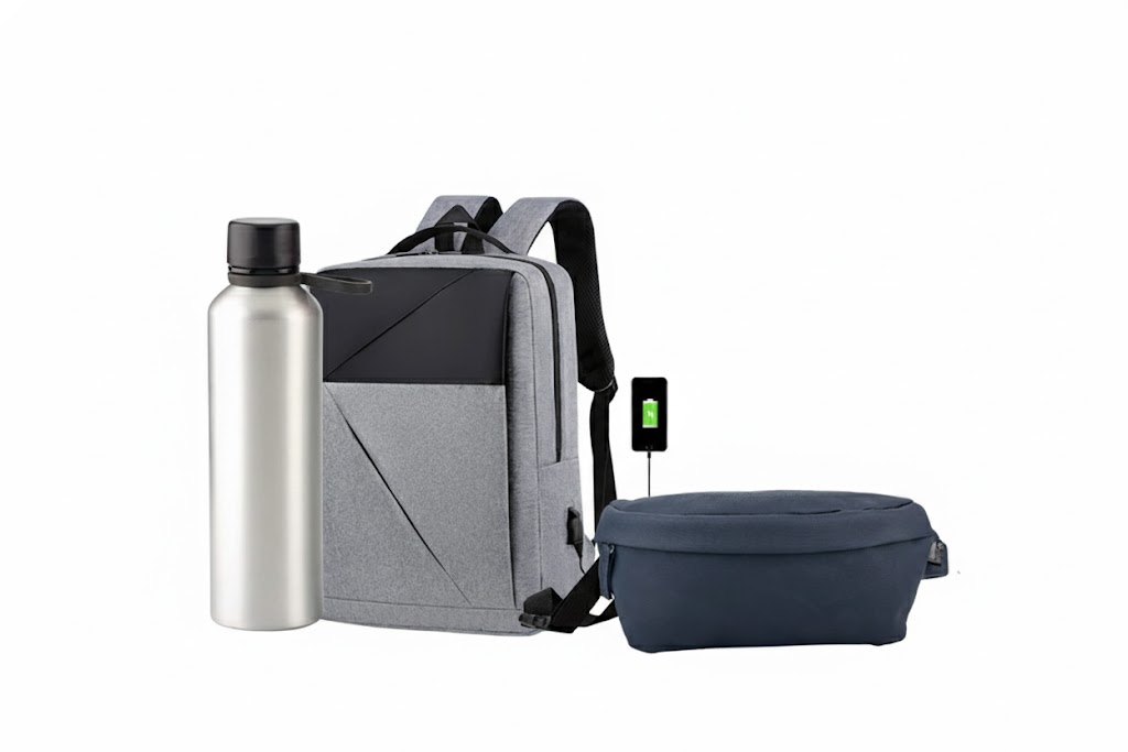 Pensado para el colaborador aventurero o aquellos que adoptan el trabajo híbrido. Los elementos combinan estilo y funcionalidad para llevar lo esencial de forma segura y cómoda. Excelente para incentivar actividades al aire libre o en eventos deportivos corporativos.
